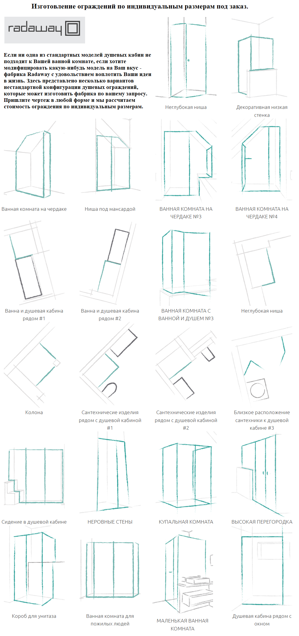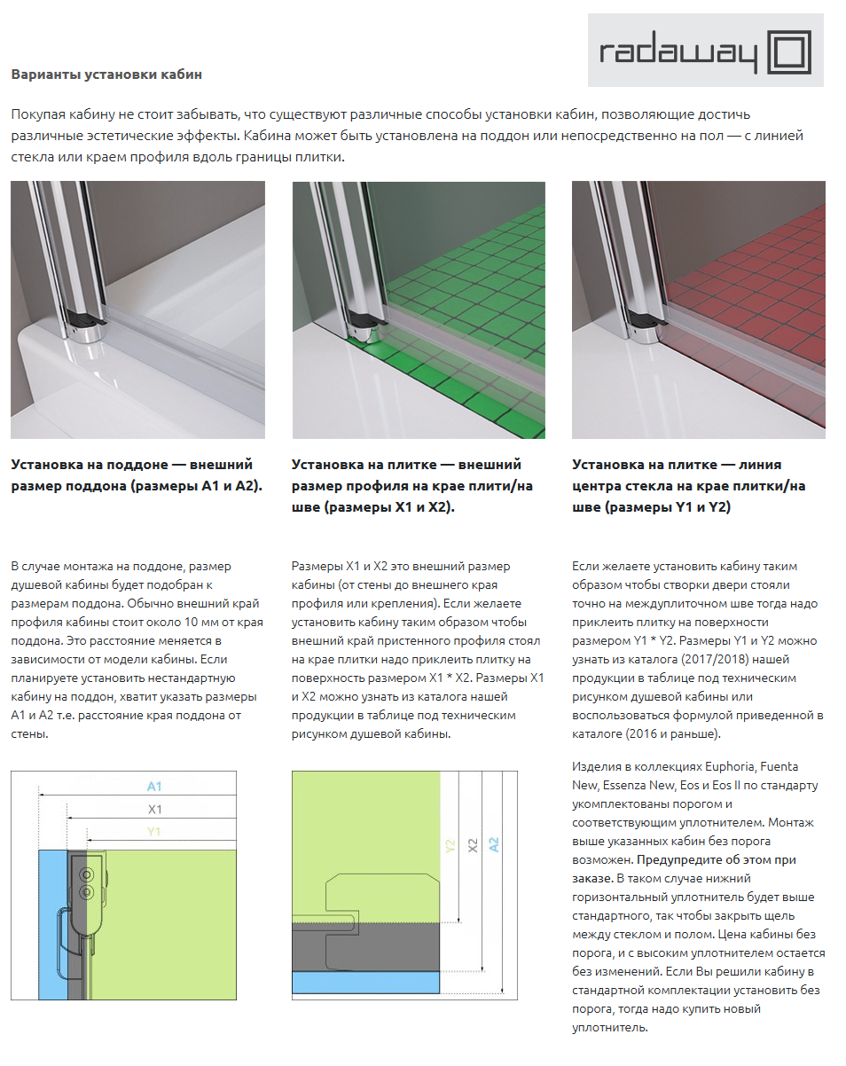 • Возможность заказа ограждения без порога. Безбарьерный вход это не только монтаж кабины без поддона, это также монтаж без планки порога. По молчанию покупатель получает все комплектующие необходимые для монтажа так с планкой порога, как и без ней. Более подробная информация в инструкции по установке.