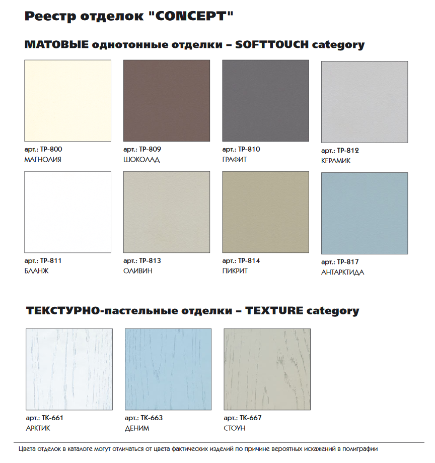 При оформлении заказа обязательно укажите код отделки и код ручек.